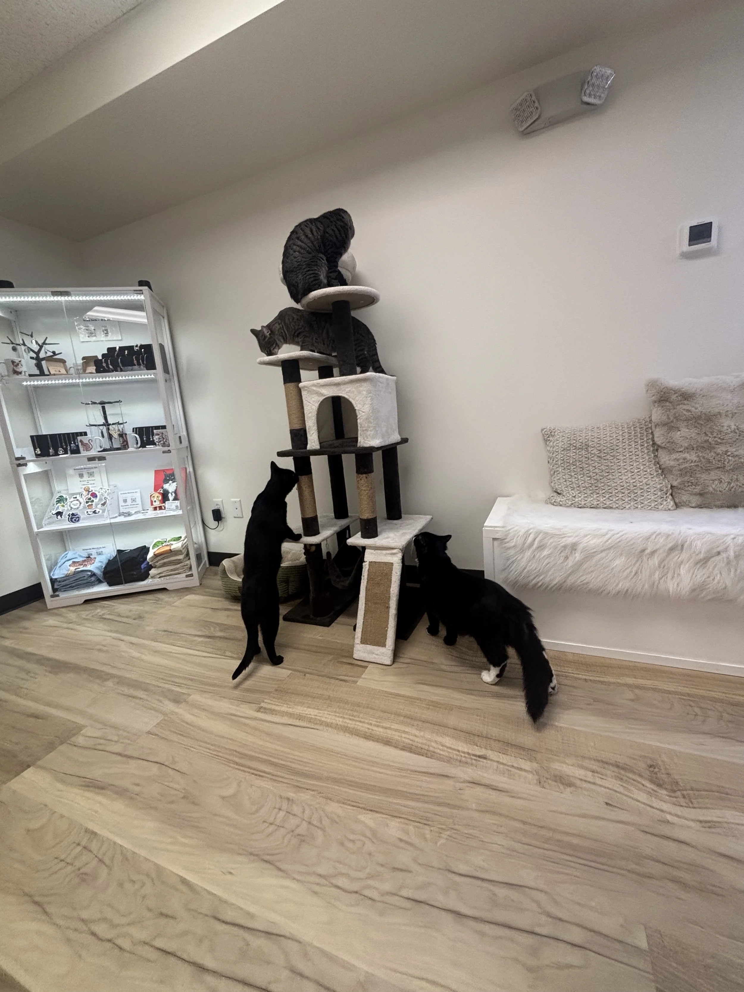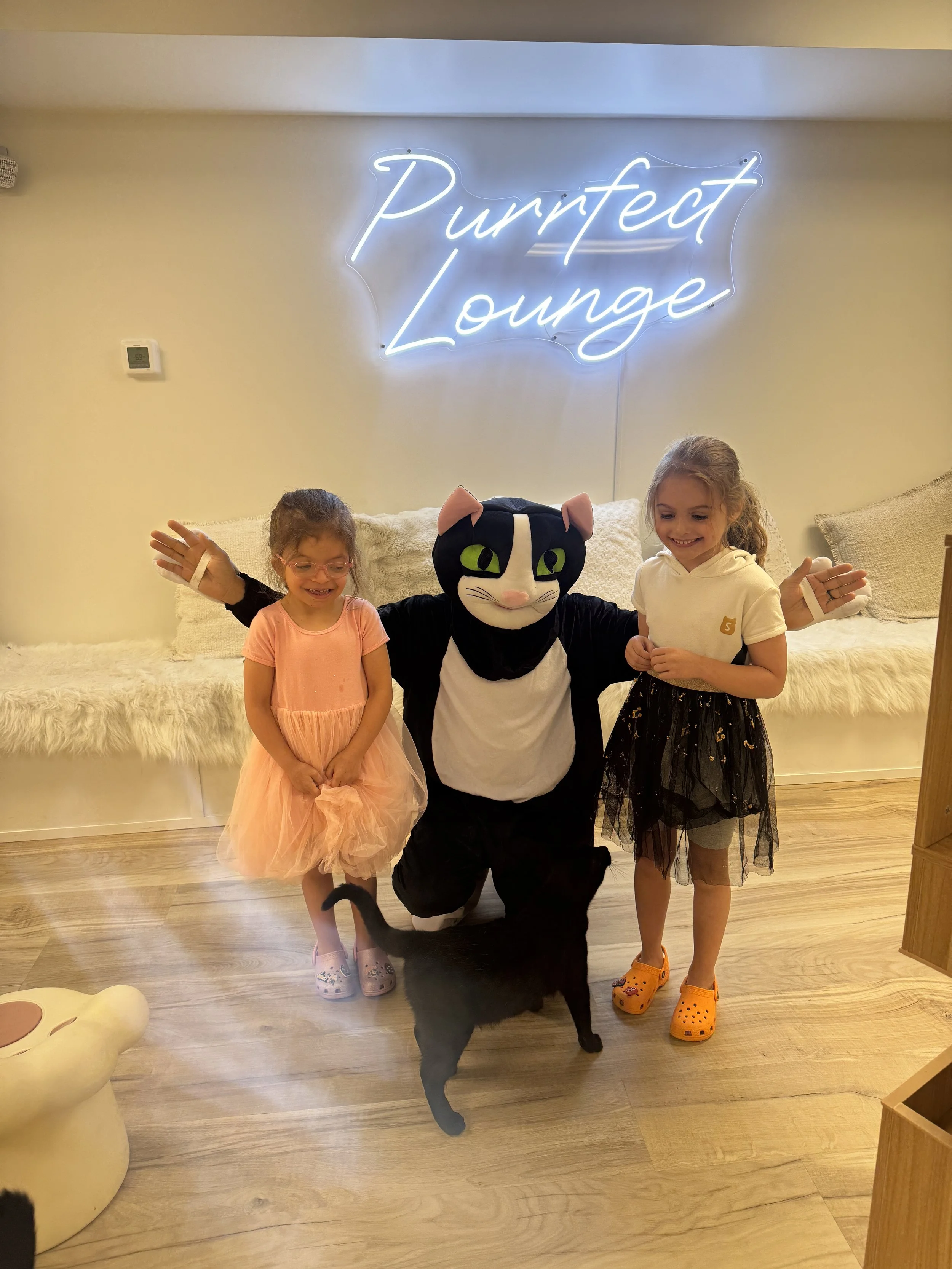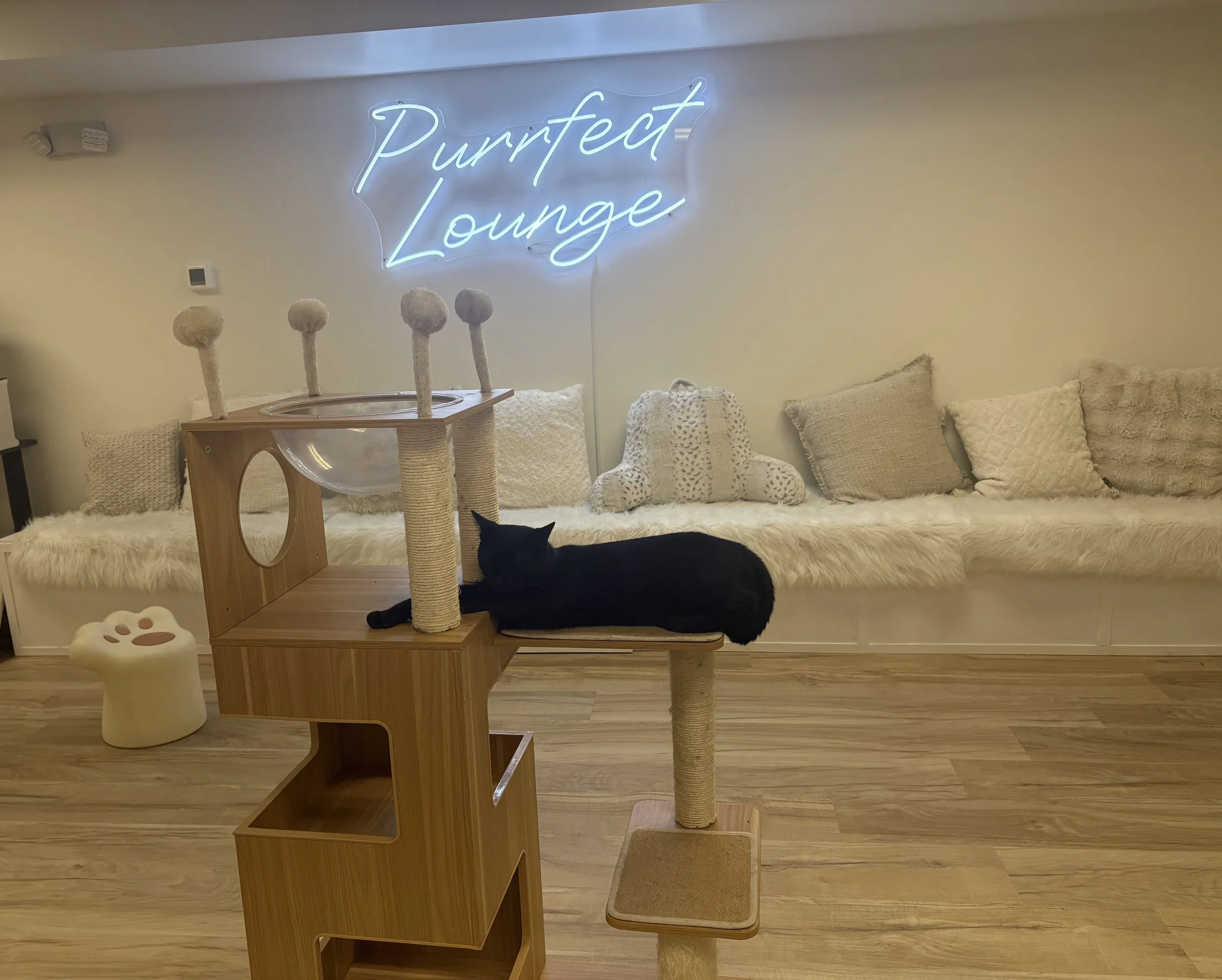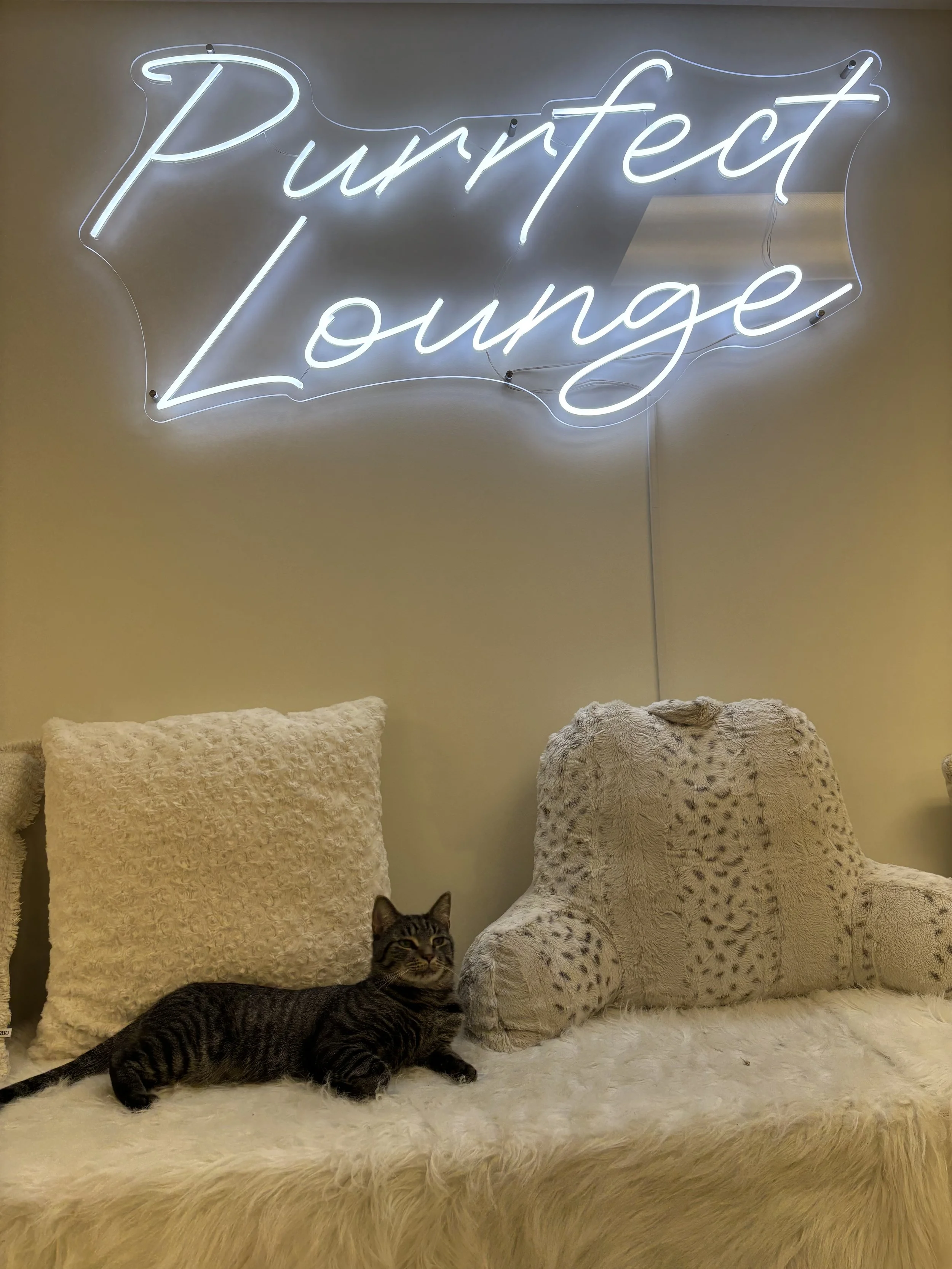 Purrfect Lounge is a cozy and welcoming cat lounge located in Plainville, CT, where you can relax, unwind, and connect with adoptable cats from Furever Cat Angels Foundation in a peaceful setting. Whether you’re enjoying a quiet moment with a furry friend or joining us for unique events like yoga or paint night with kitties, Purrfect Lounge offers a one-of-a-kind experience for cat lovers of all ages.